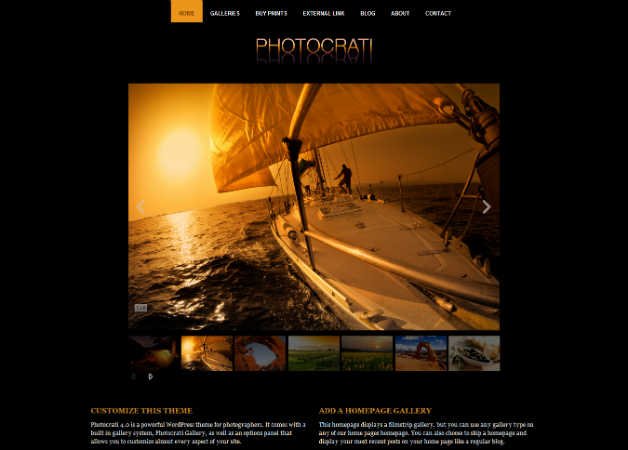 Photocrati offers a wordpress theme geared towards photographers which includes 15+ different styles. It is a simple straight-forward theme for the amateur or professional photographer.